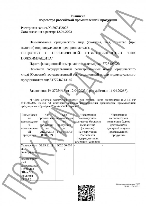 Наши самоспасатели и средства локальной защиты марки «Шанс» относятся к средствам индивидуальной защиты людей от воздействия опасных факторов пожара.
